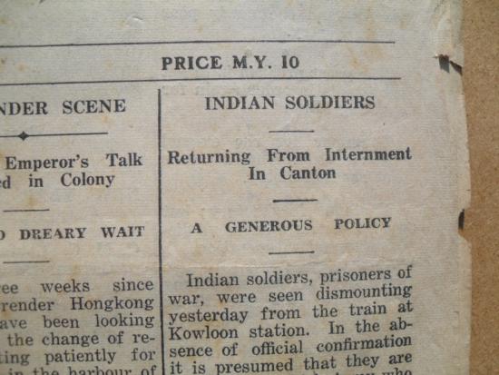 Several of the printed in English news sheets are ''The South China Morning Post & Hong Kong Telegraph'' dated 31st Aug,1,3,4,6 and 7th of September but also amongst this group is a rare 16th of August dated ''Hong Kong News'' news sheet again printed in English but under strict censorship by Imperial Japanese Forces.