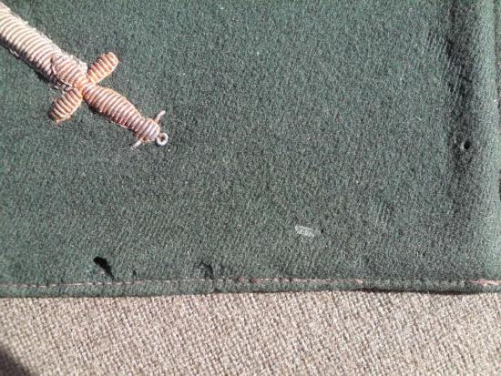 This historic wool/felt based pennant with bullion crossed tulwar swords and crescent moon is in good order but does have a some moth damage along with a very small loss of bullion wire on one sword (best to mention) , goat skin spine now slightly grubby, lightly stiffened with age.
