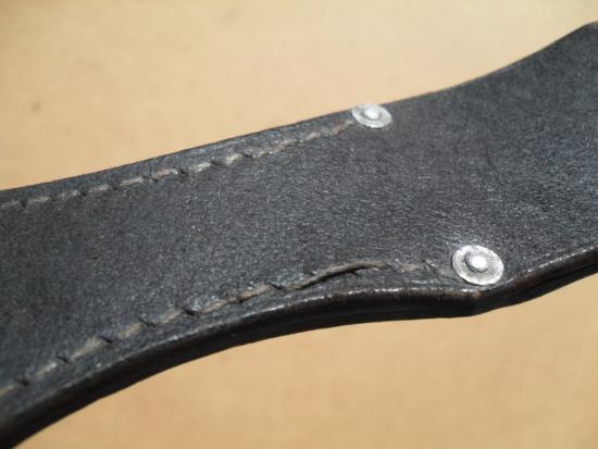 The stitching is in very good order apart from just below one of the top rivets, the stitching is not broken just not gone through , possibly from time of manufacture, not really noticeable.