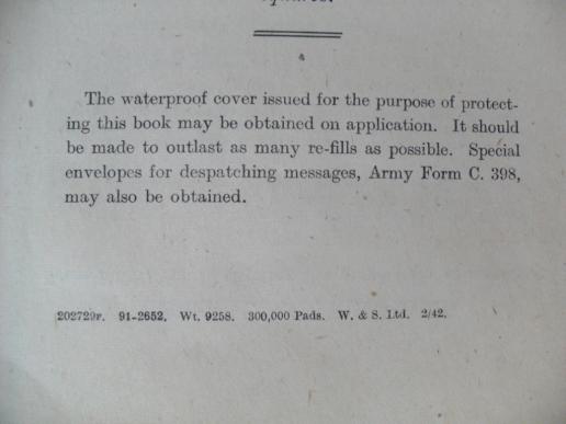 An excellent 42 dated field message book( note pad) with its 41 dated detachable protective cover.