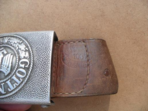 A non-maker marked buckle but the leather tab stamped with Schmole of Menden 1937.