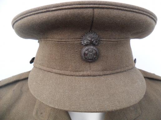 A service dress uniform consisting of cap, jacket & trousers that were worn by then Captain L.H.Yates 1st Battalion, Royal Welch Fusiliers (promoted to Capt in 1938).