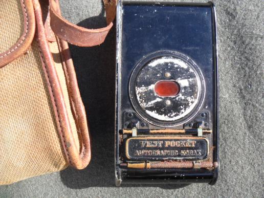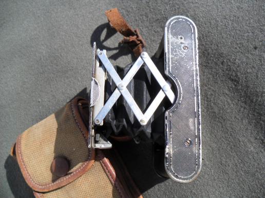 This example is in used condition with age related wear to all surfaces, the strap on the canvas case is broken, name and London address written on the inside of flap.