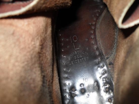 Wonderful condition 44 dated British-made jungle boots in a desirable size 10 large, with matching War Department acceptance marks and crisp internal makers details - Wm. Mason Ltd, Leicester, 1944, 10 L.