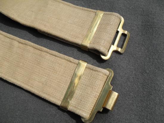 The webbing is lightly blanco'd and in good service used condition, typical Indian brass fittings, there is a very faint makers ink stamp present and I believe it to be 'CO.1943' with the letter L (large) above.