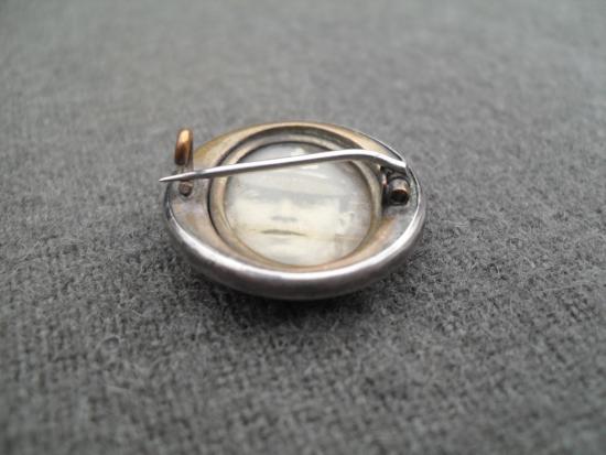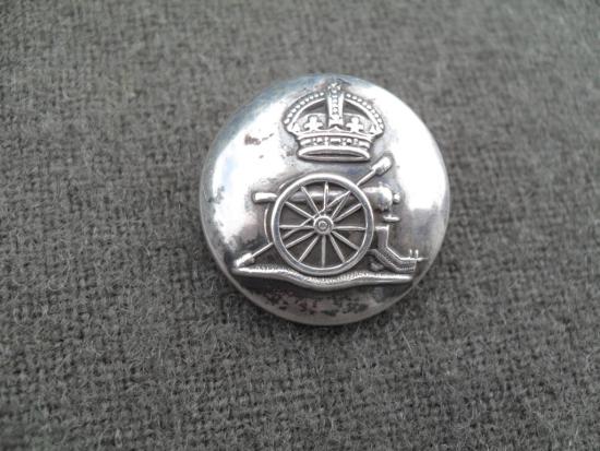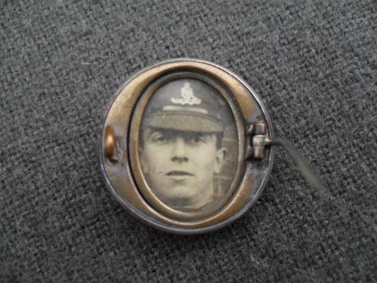 A nice example of a WW1 Royal Artillery silver plated button converted to a sweetheart brooch with inset photograph of a young gunner, working pin & catch, 25mm dia.